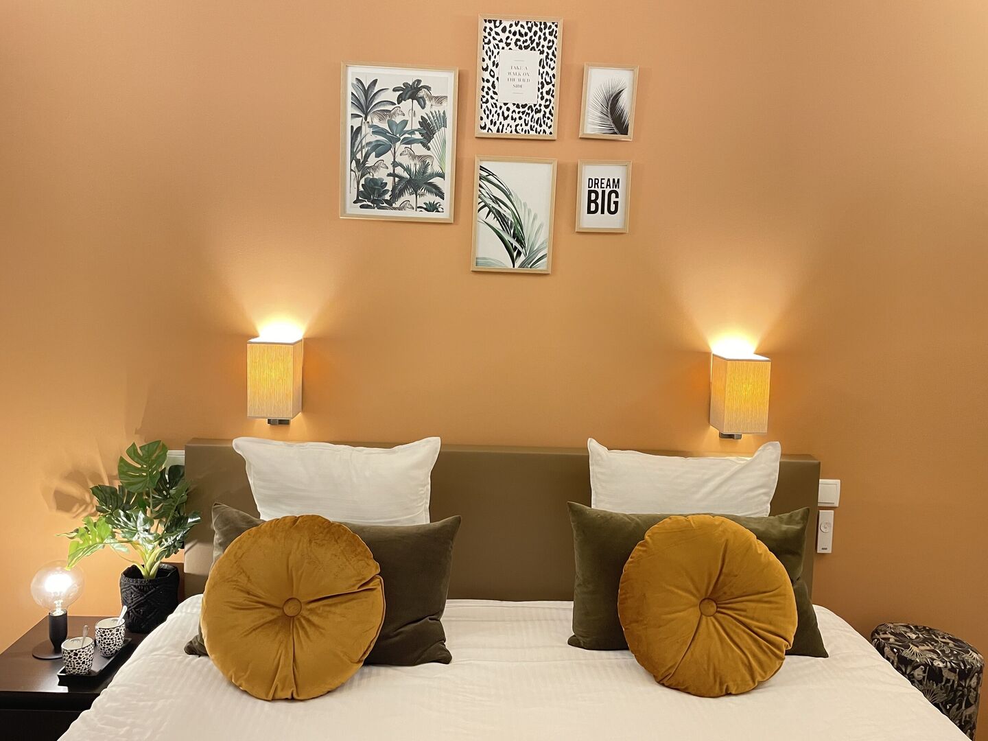 Enjoy a wonderful overnight stay in one of our comfortable accommodations. The modern, colorful rooms are equipped with a bathroom with shower and toilet, a spacious desk with safe, a flat-screen TV, air conditioning and coffee and tea making facilities.