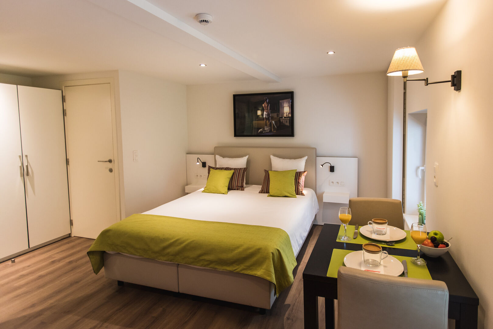 Heerlijk overnachten in één van onze comfortabele verblijven. De modern ingerichte kleurrijke kamers zijn uitgerust met een badkamer met douche en wc, een ruim bureau met kluis, een flatscreen tv, airconditioning en zijn voorzien van koffie- en theefaciliteiten.